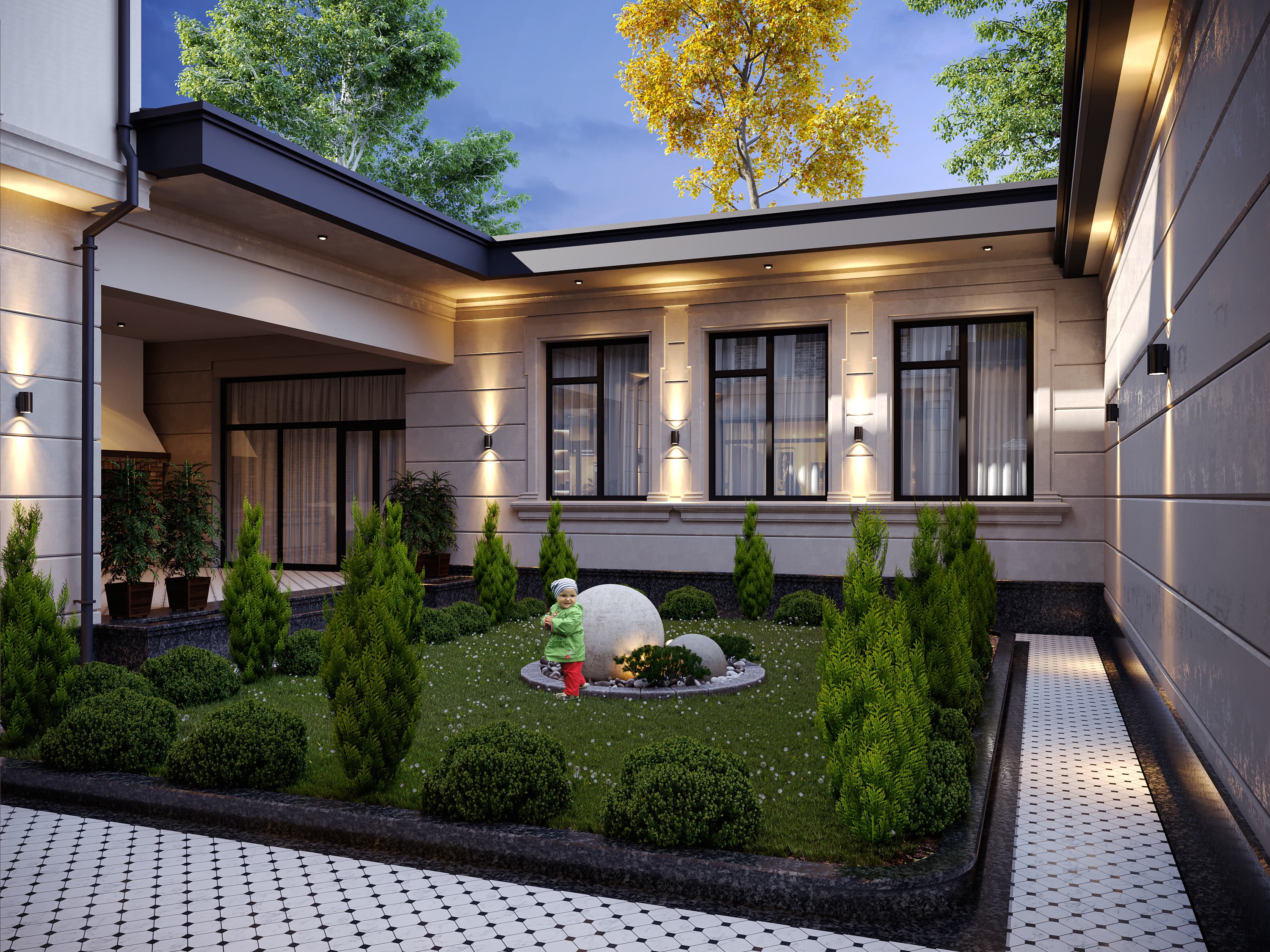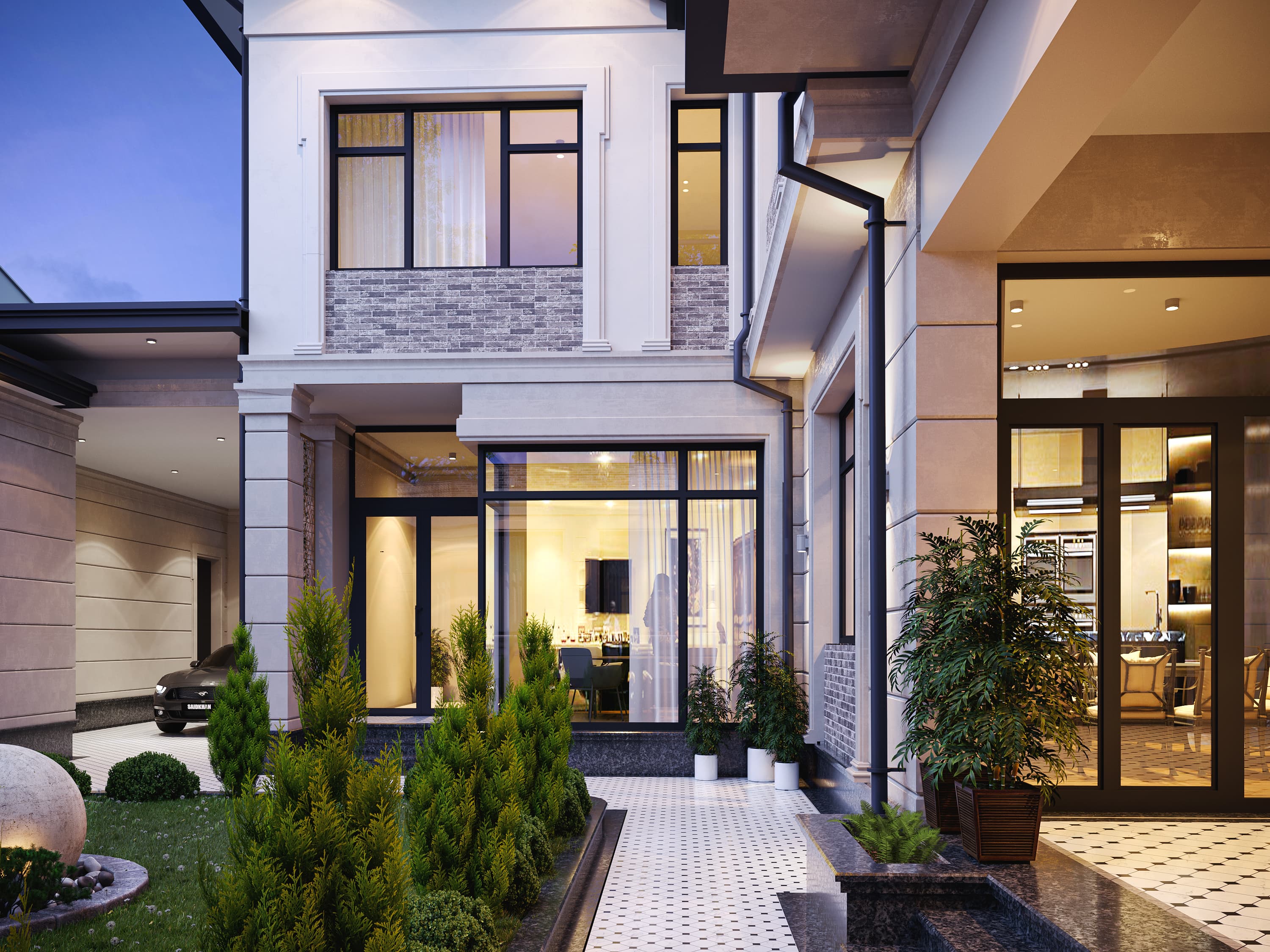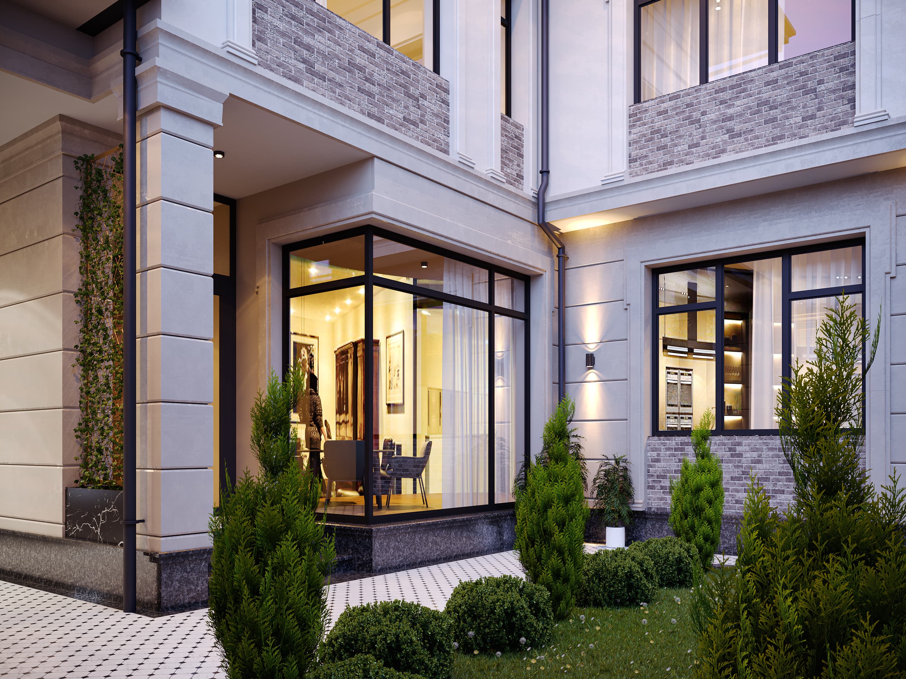We have decorated our exterior with a new design. We used travertine stone and decorative brick.