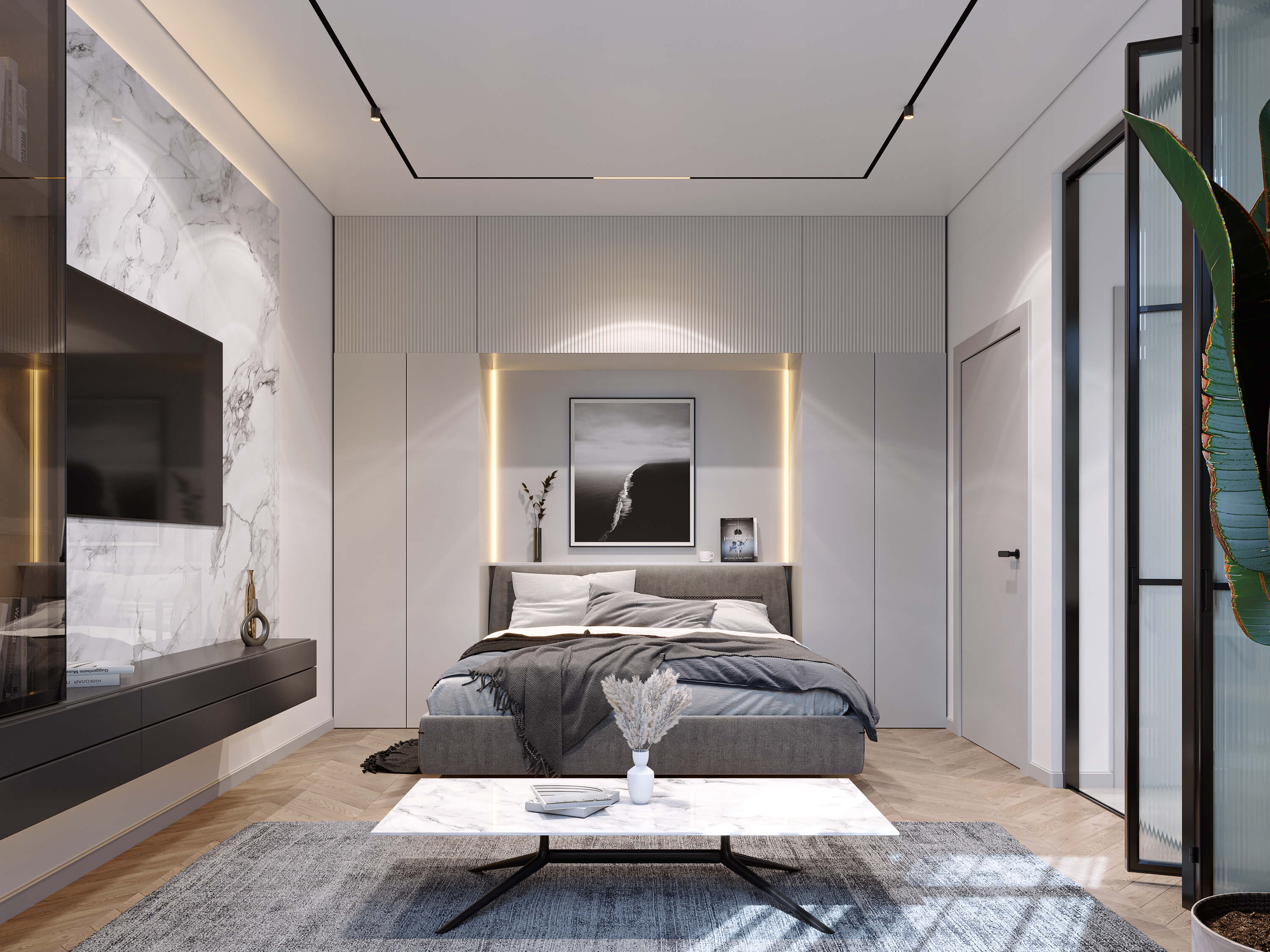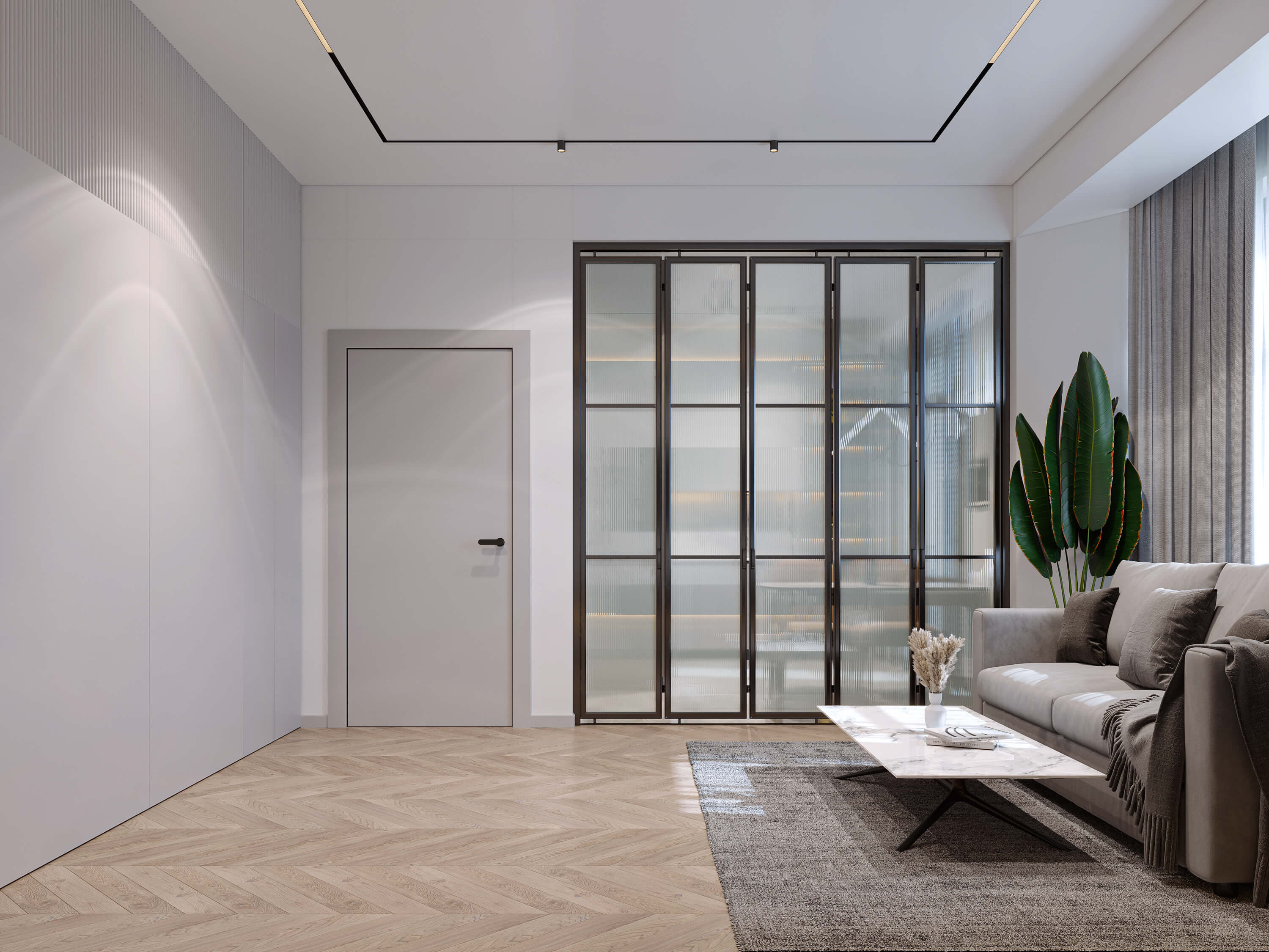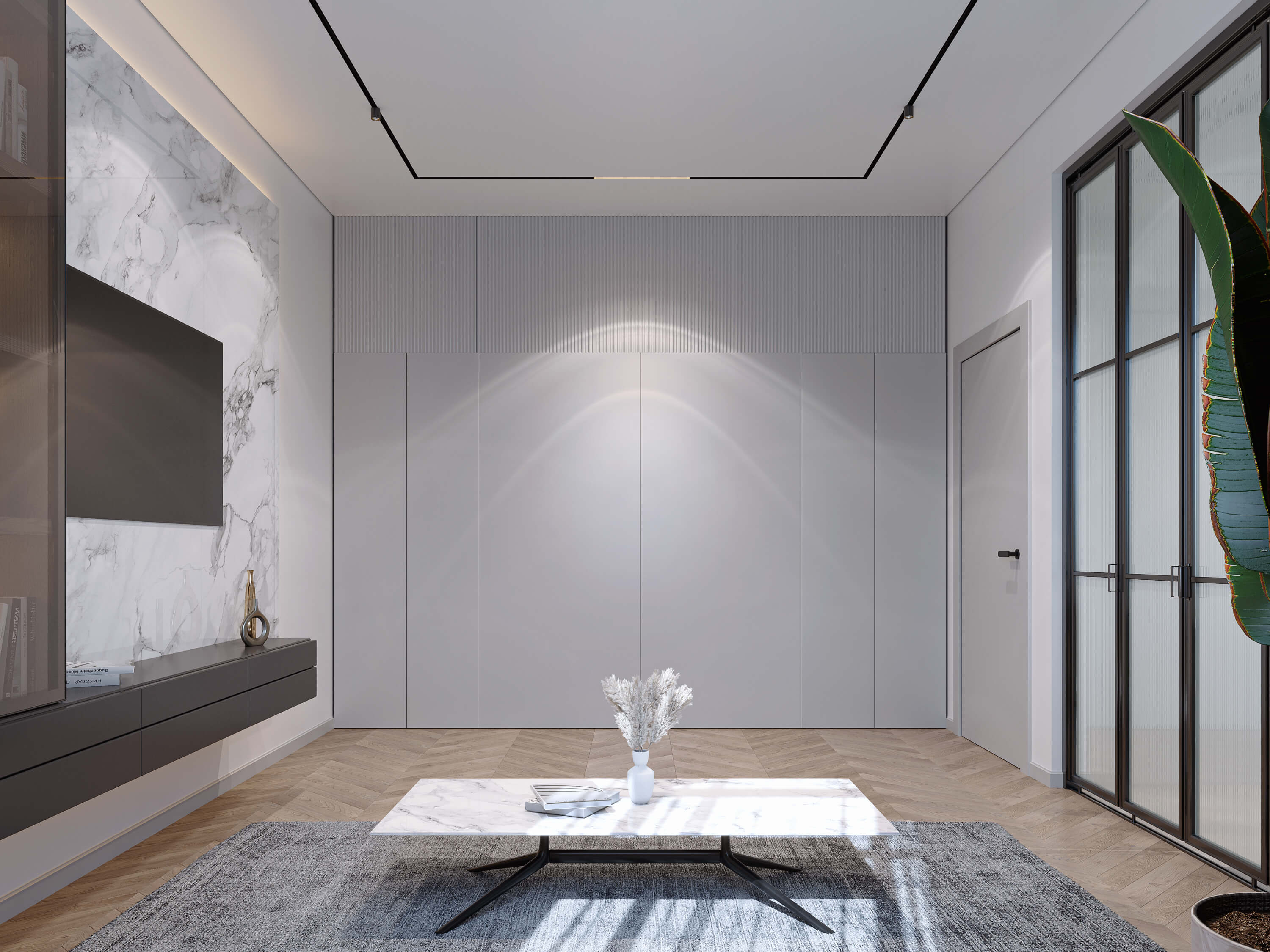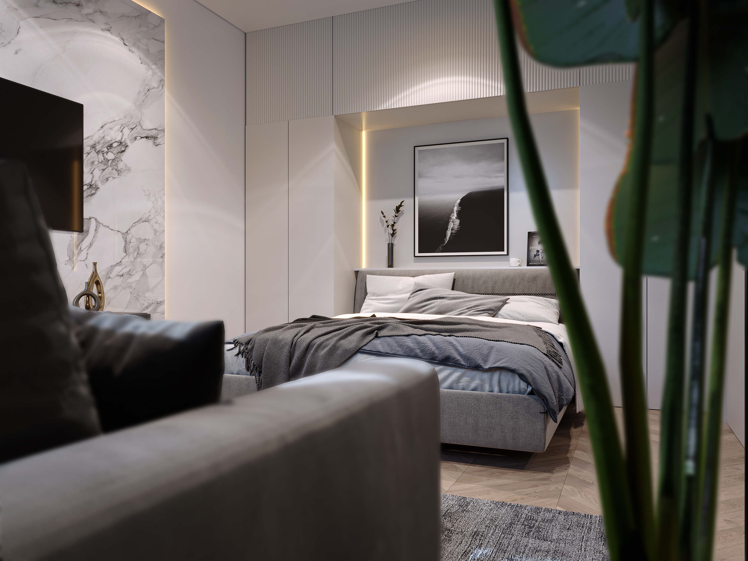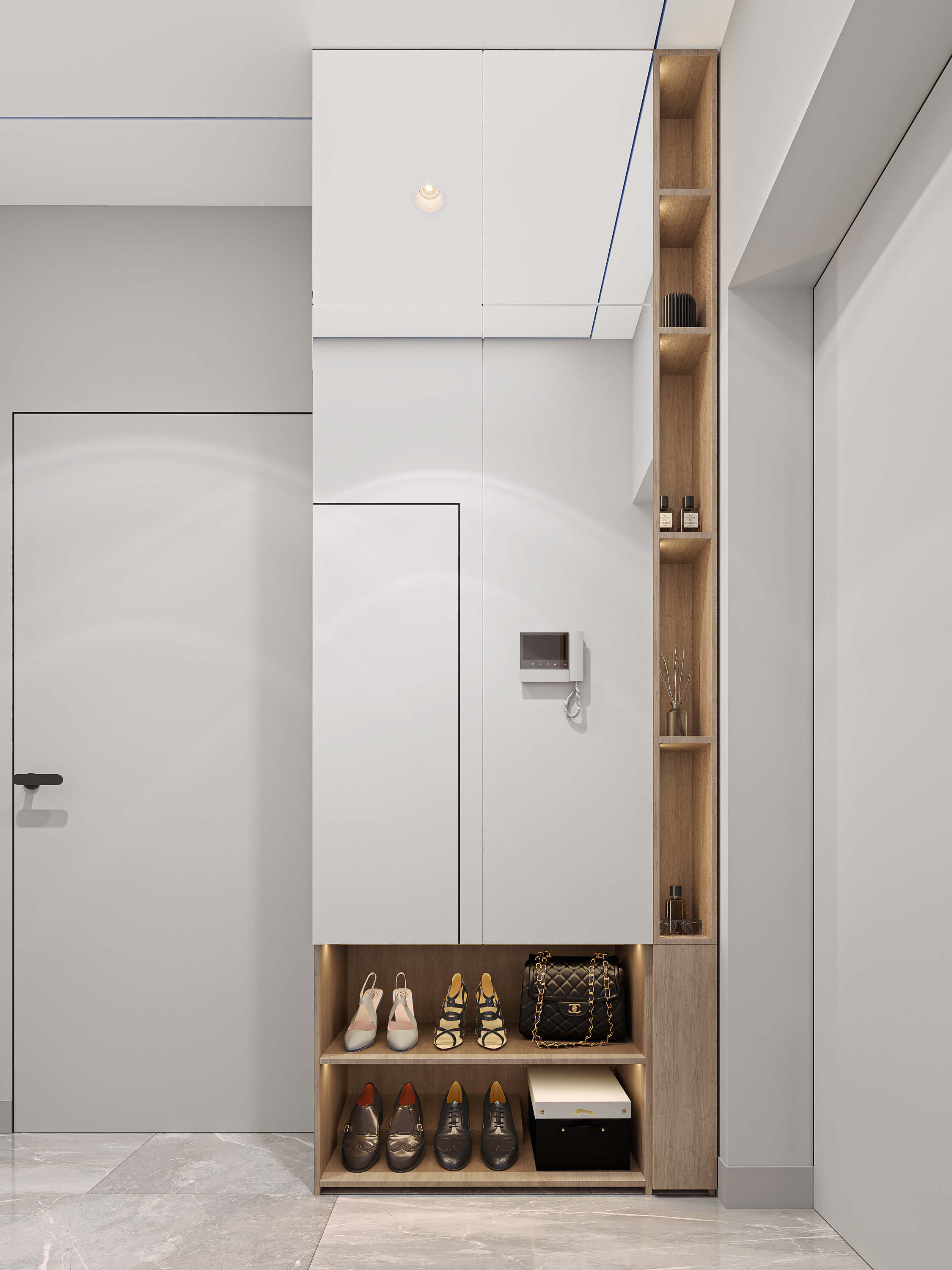 This project made in a minimalist style for a small space has all the comforts.Our 1-room house consists of a hall, a bathroom, a bedroom/living room, and a kitchen.
