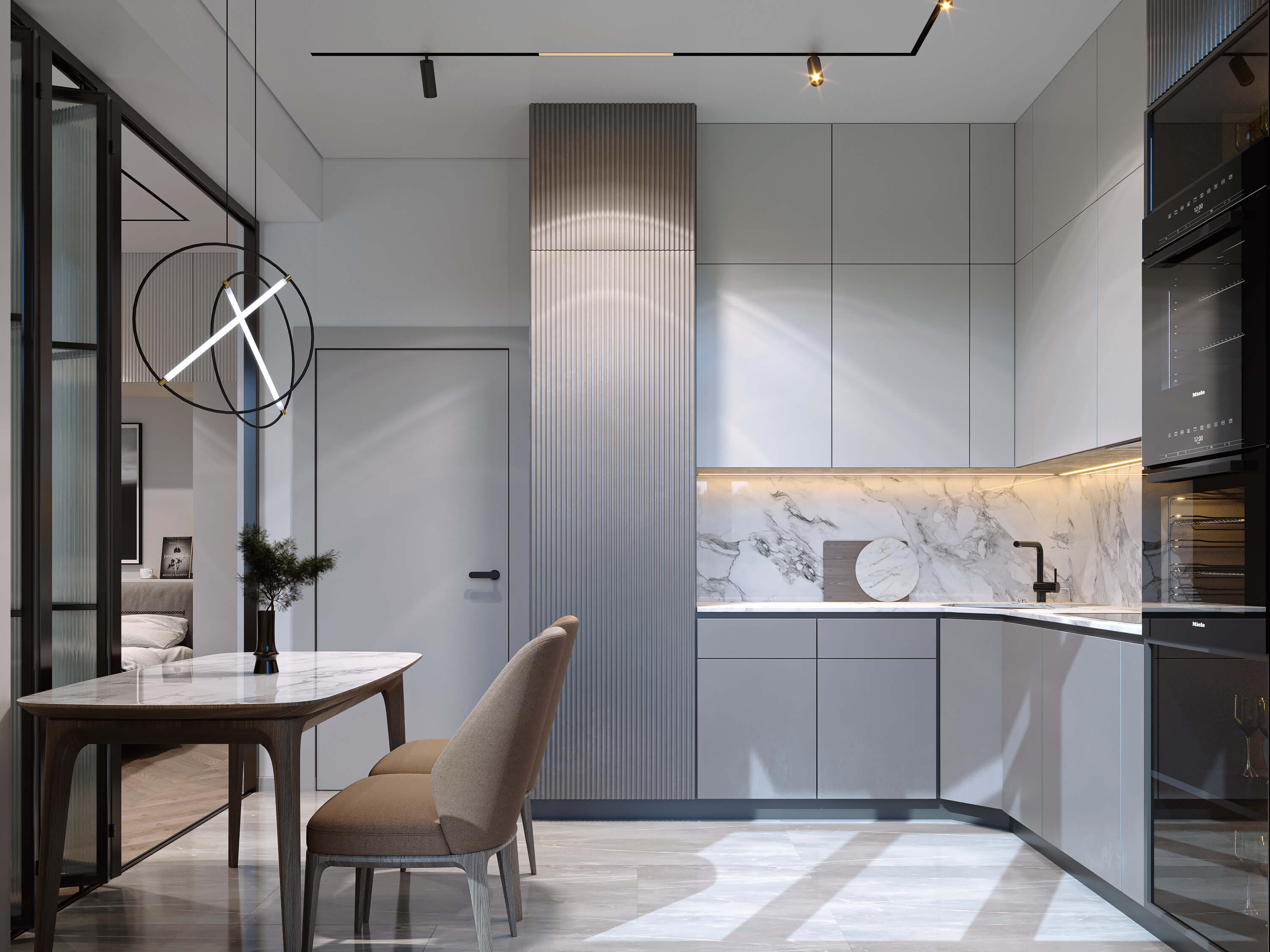 Although our kitchen is 13 m2, it has all the appliances.There is also access to the kitchen from the hall and from the bedroom.When you are alone at home, the bedroom door can be opened to create a more spacious kitchen.