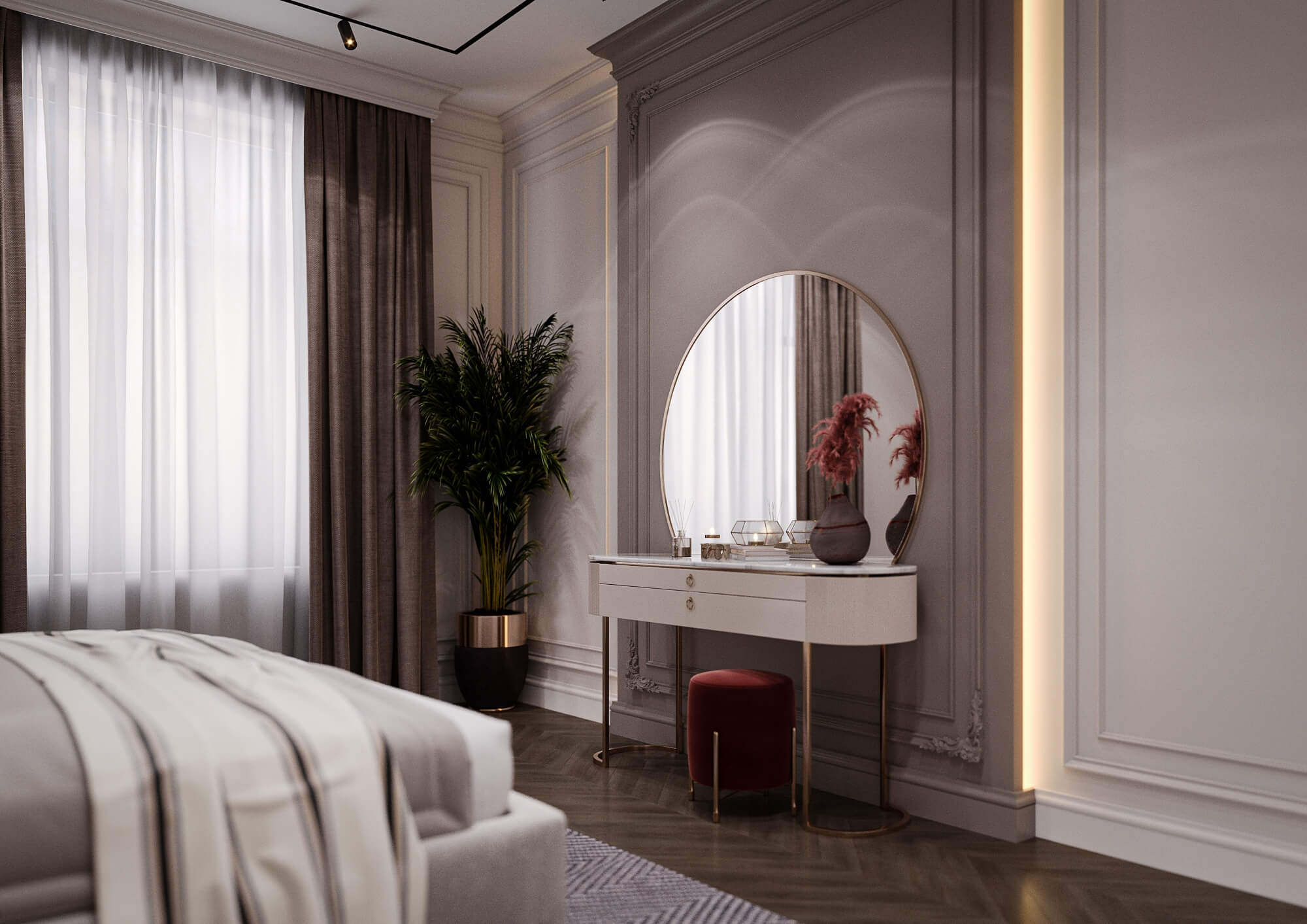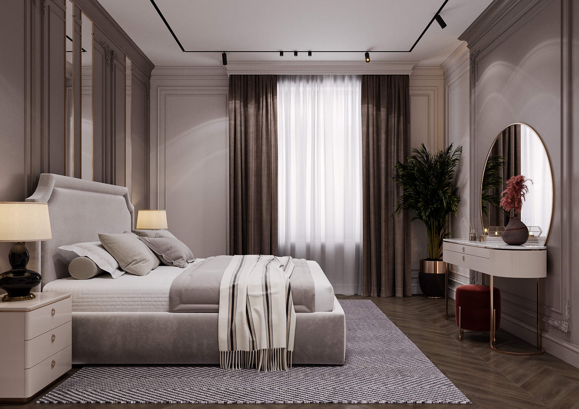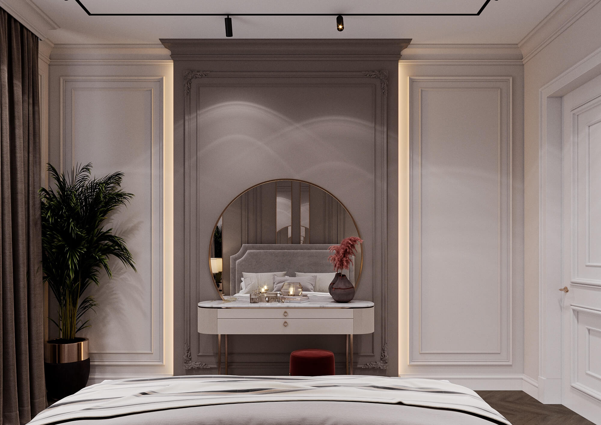 This project is a Neoclassic style bedroom. This project is mainly decorated with paint and wall frames. Our client really liked this design.