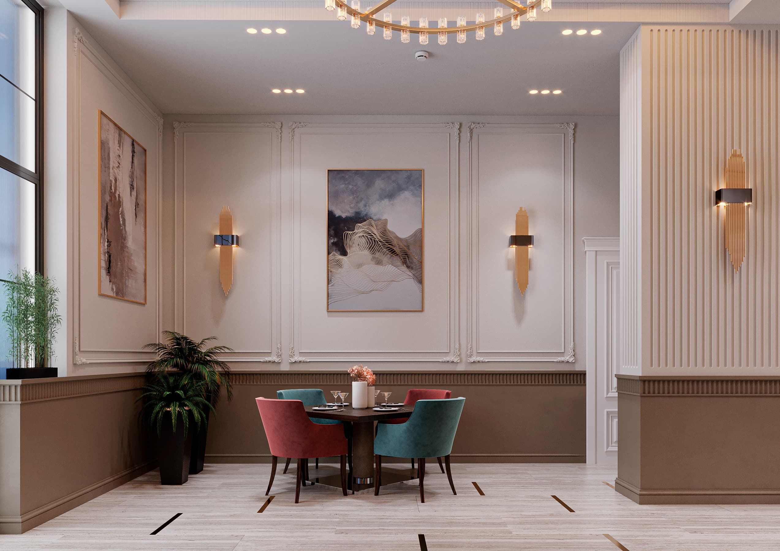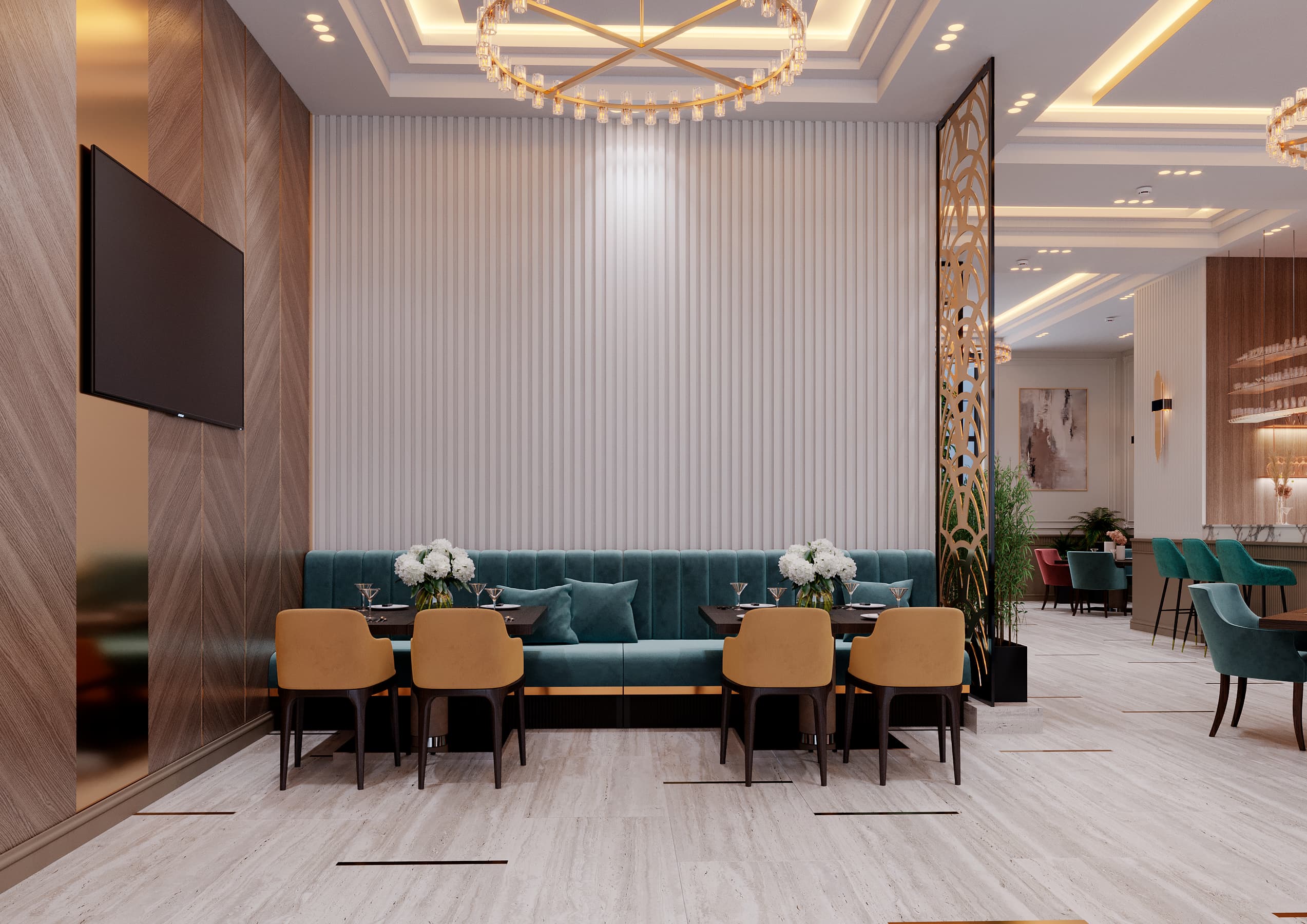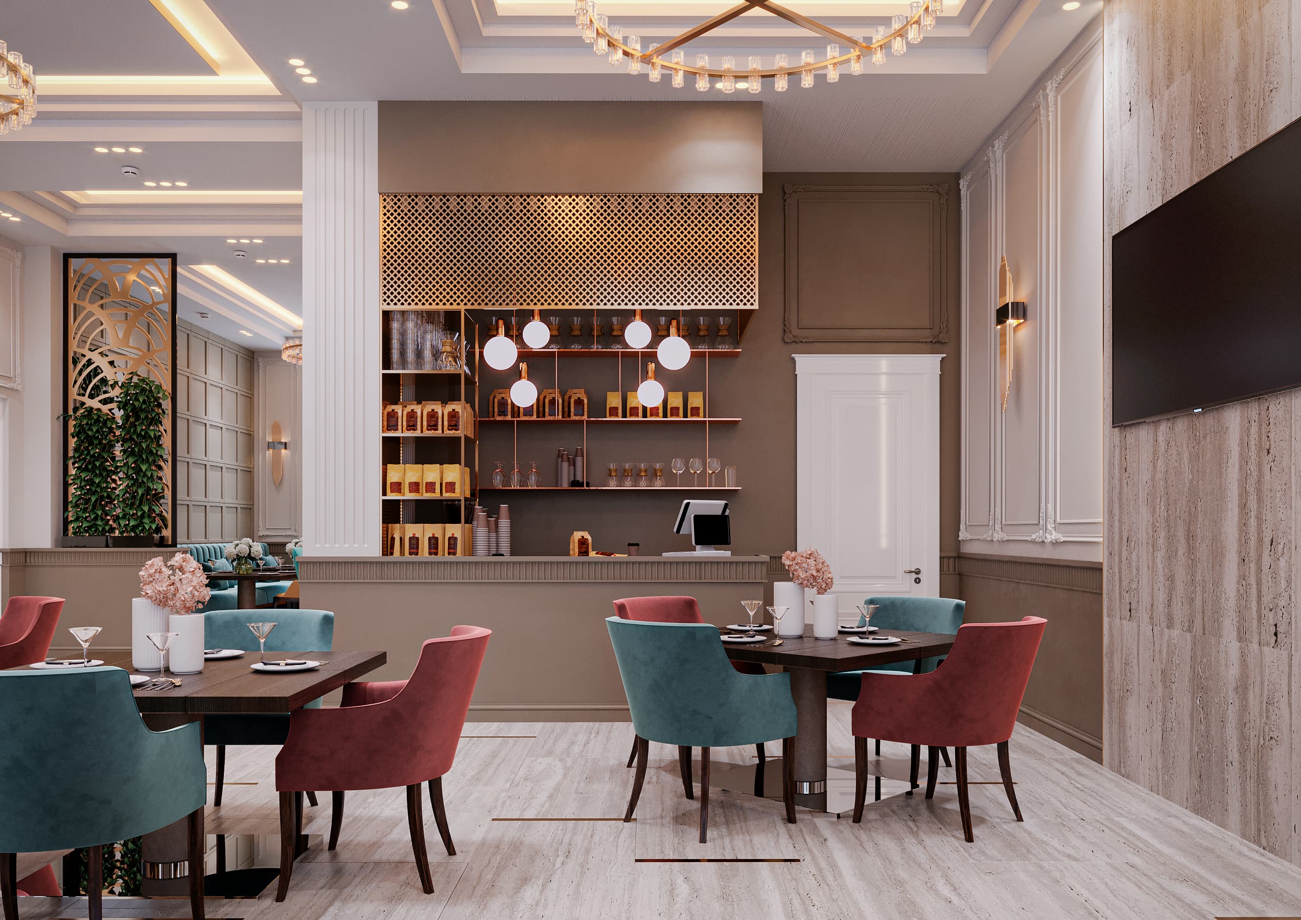 This restaurant project was made in Neoclassical style. Our client really liked the project. Currently, this project of ours has been realized, and our client has already started working.