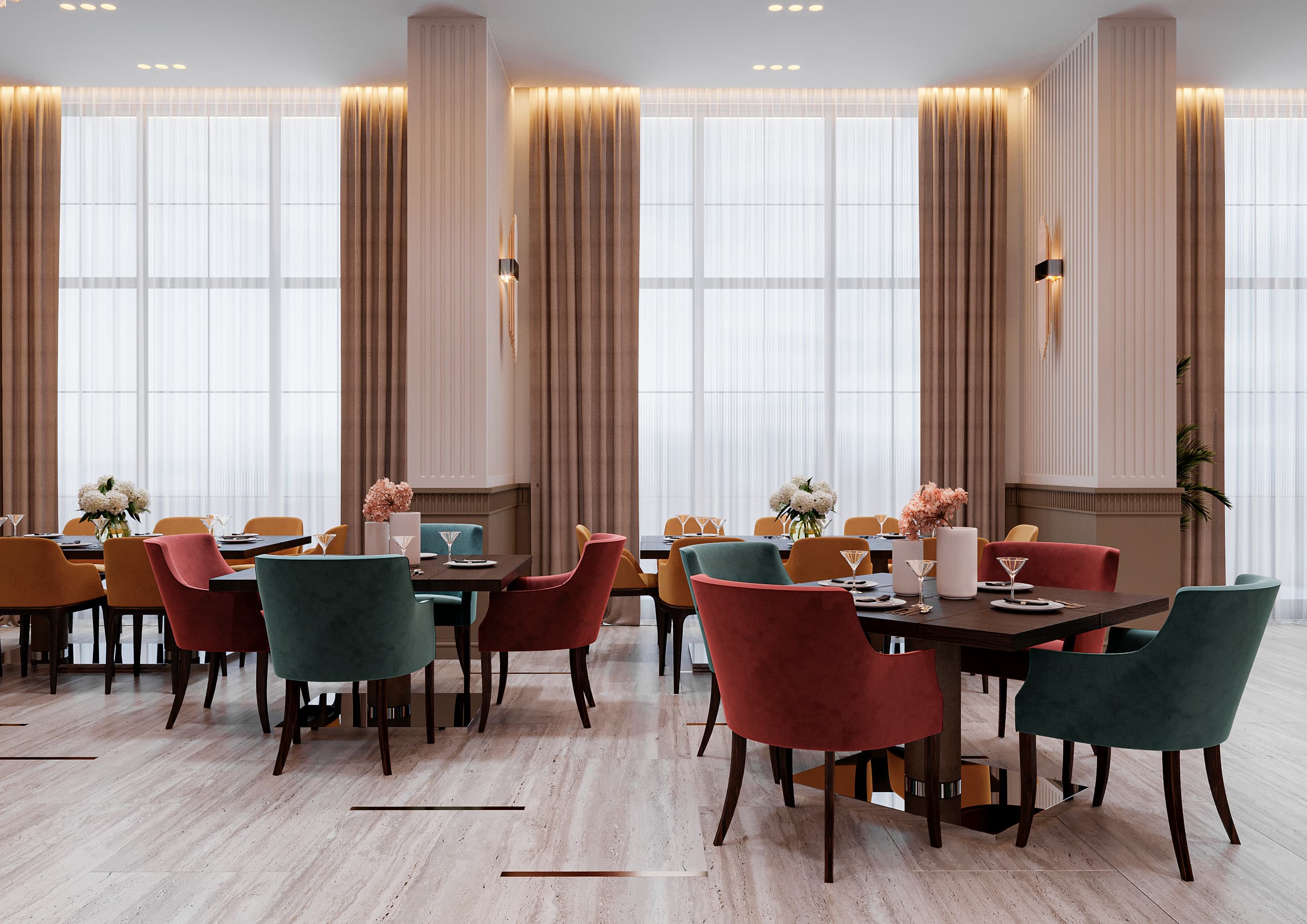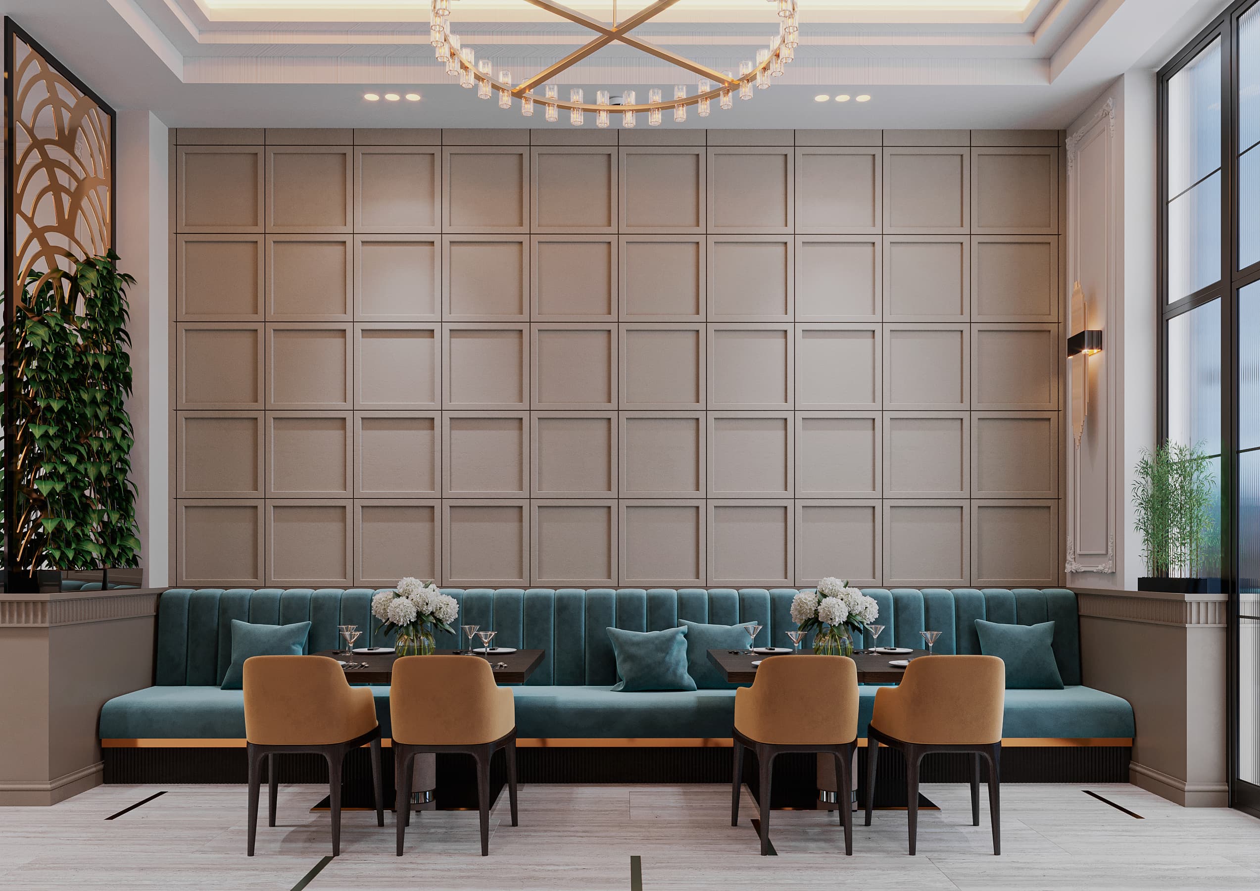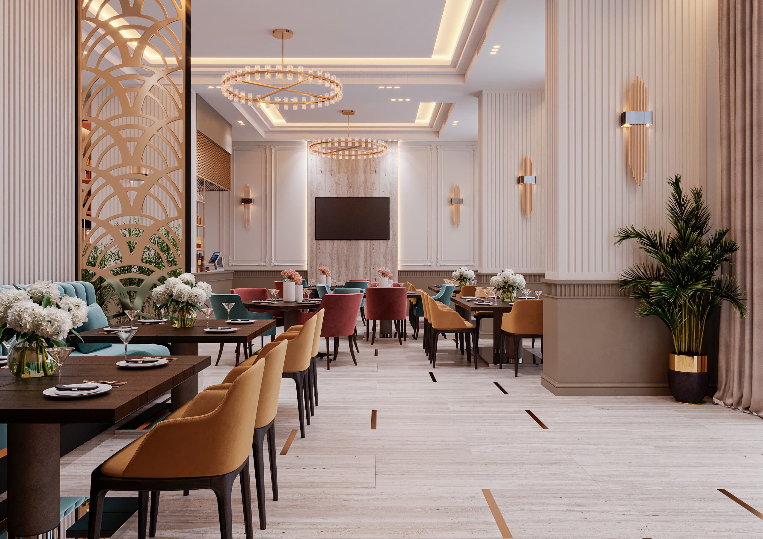 This restaurant project was made in Neoclassical style. Our client really liked the project. Currently, this project of ours has been realized, and our client has already started working.